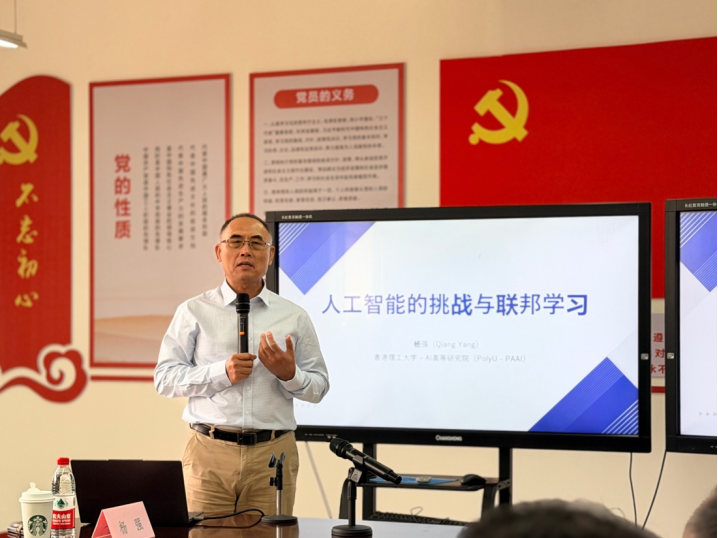 下午的学术报告中,杨强教授深入分析了人工智能发展面临的算力与数据瓶颈、隐私保护与模型性能平衡等关键问题,重点介绍了迁移学习与联邦学习的研究进展与应用前景,并分享了对人工智能可持续发展和前沿技术演进的深刻见解。