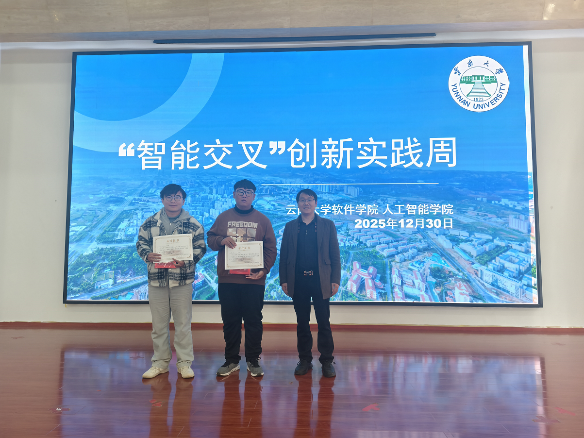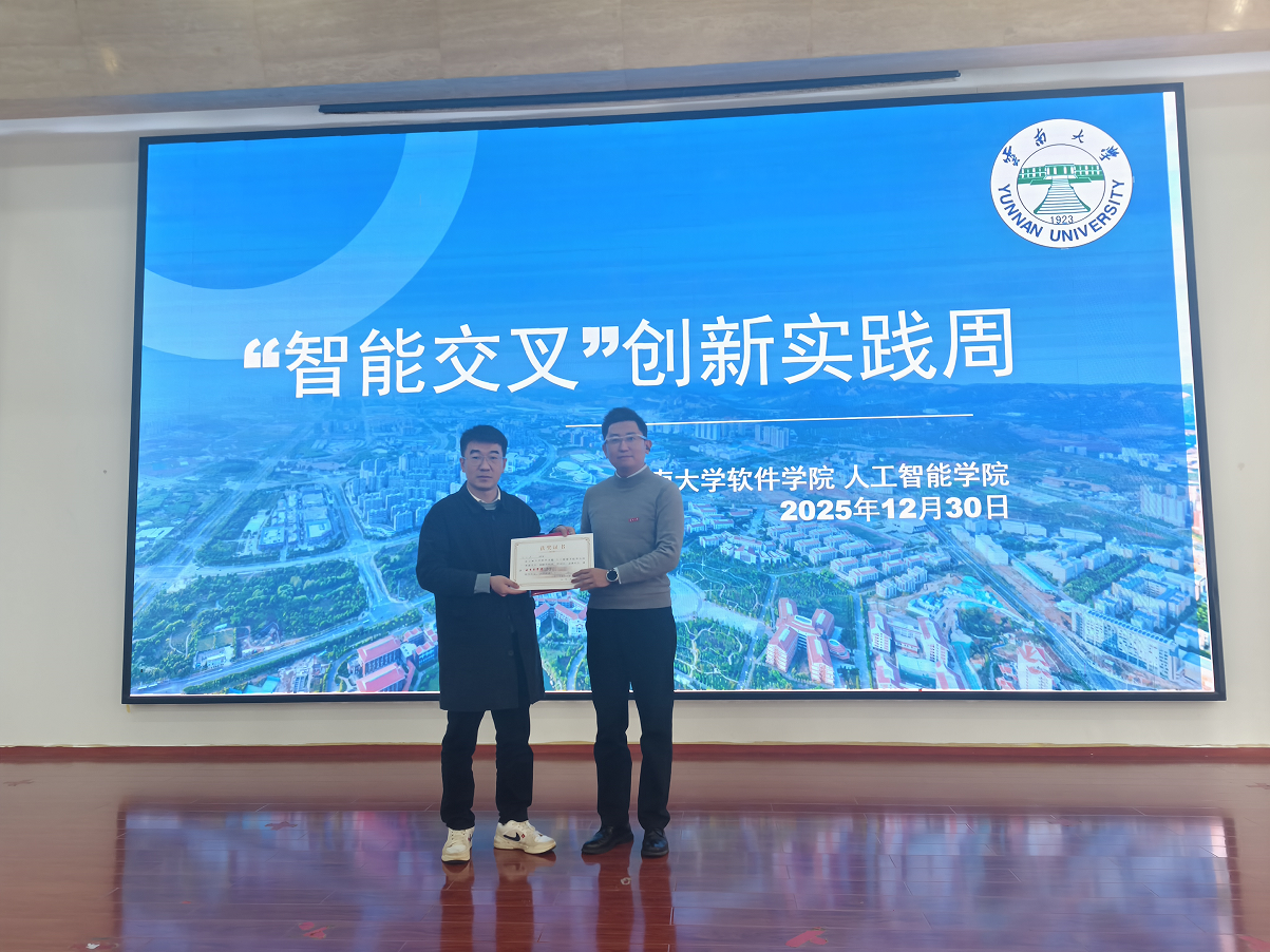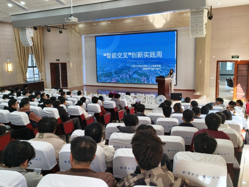 2025年12月30日下午,冬日的暖阳洒满校园,云南大学软件学院人工智能学院“智能交叉”创新实践周系列主题活动在浓厚的学术氛围中拉开帷幕。作为深化研究生培养模式改革工作的重要举措,本次活动致力于构建高水平、常态化的学术交流工作范式——代表学生通过分享科研成果、探讨学术前沿,不仅能够激发学生科研热情,更在不同研究方向间架起了交流的桥梁,切实提升学生的学术表达力与创新实践能力。作为学院倾力打造的学术名片,本次实践周活动吸引了全院师生的广泛参与,活动现场座无虚席,展现出我院师生极高的参与热情与学术活力。
